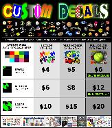 SEE OUR DECAL PRICE LIST! If you don't see a price for the kind of decals you're looking for, use the link below for FREE ESTIMATES in 24 Hours or 1 Business Day! |